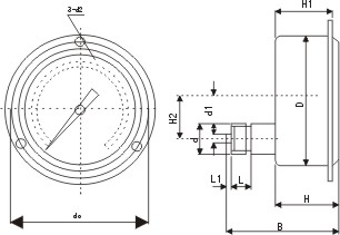 壓力表又稱一般壓力表和彈簧管式壓力表,壓力表又稱標準壓力表。壓力真空表包括負壓與正壓量程范圍指示,軸向壓力表φ60型訂貨時請注明接頭螺紋M10×1或M14×1.5。