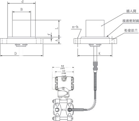 AK-3051GP遠傳壓力變送器是一種通過安裝在管道或容器上的遠傳裝置來感受被測壓力,該壓力經毛細管內的灌充硅油(或其它的液體)傳遞至變送器的主體,然后由變送器主體內的δ室和放大線路板,將壓力或差壓轉換4~20mA.DC信號輸出(參見結構原理圖)。